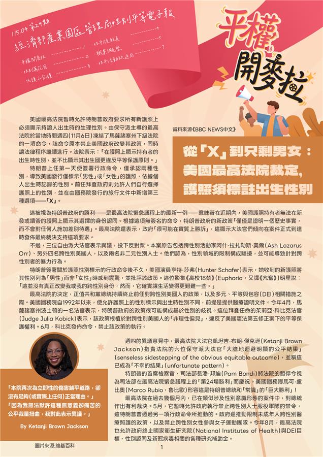 🌍平權開麥拉:美國最高法院暫時允許新護照需標示「出生時性別」,引發跨性別與非二元族群權益與安全的討論。