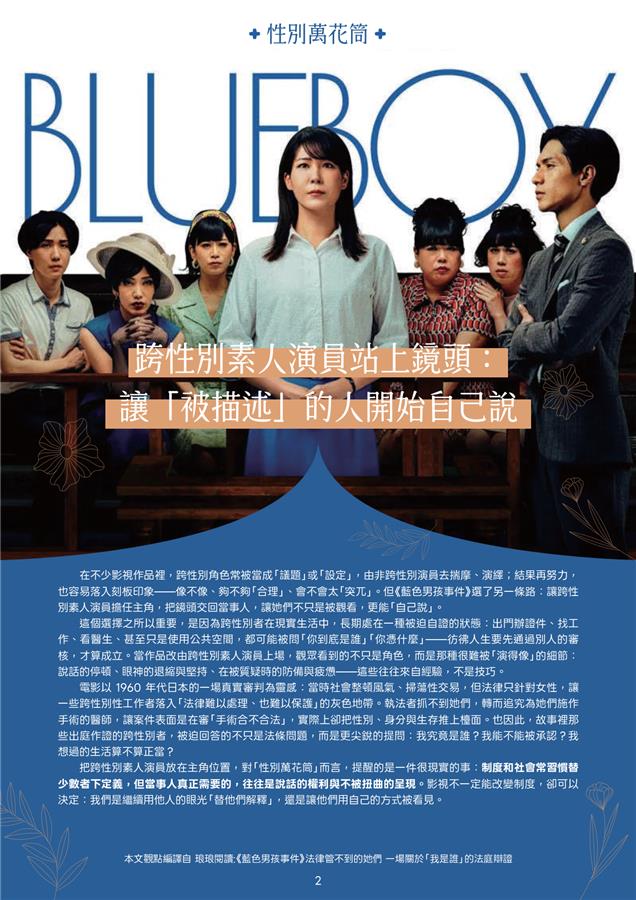 🎬性別萬花筒:跨性別「素人演員」站上鏡頭,讓長期被他人定義的生命經驗有機會自己發聲,也提醒我們別用刻板眼光替人下結論。